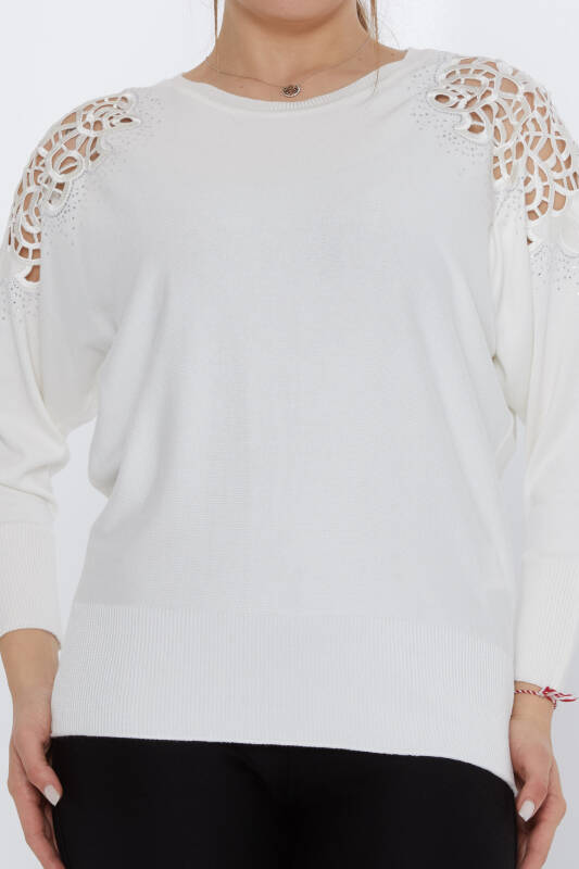 Maglione in maglia con scollo a V e dettaglio a costine, colore: Ecru - 31288 | KAZEE (Set di 3 M-L-XL)