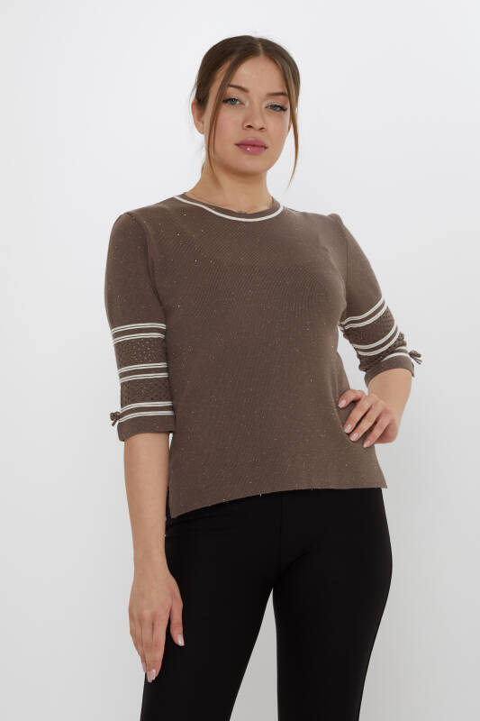 Maglione in maglia con maniche dettagliate e glitter in visone scuro - 31316 | KAZEE (Set di 3 M-L-XL)
