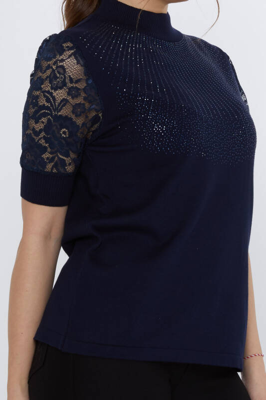 Maglione in maglia con maniche in pizzo e pietra ricamata blu navy - 30959 | KAZEE (Set di 4 M-L-XL-2XL)