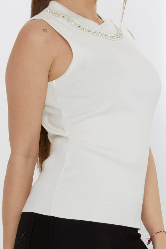 Maglione in maglia con perline e pietra ricamata, dettaglio finestra posteriore, colore Ecru - 31582 | KAZEE (Set di 3 M-L-XL)