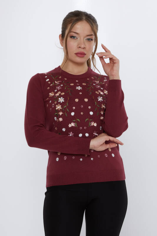 Maglione in maglia con ricamo colorato a maniche lunghe rosso bordeaux - 31122 | KAZEE (Set di 3 M-L-XL)