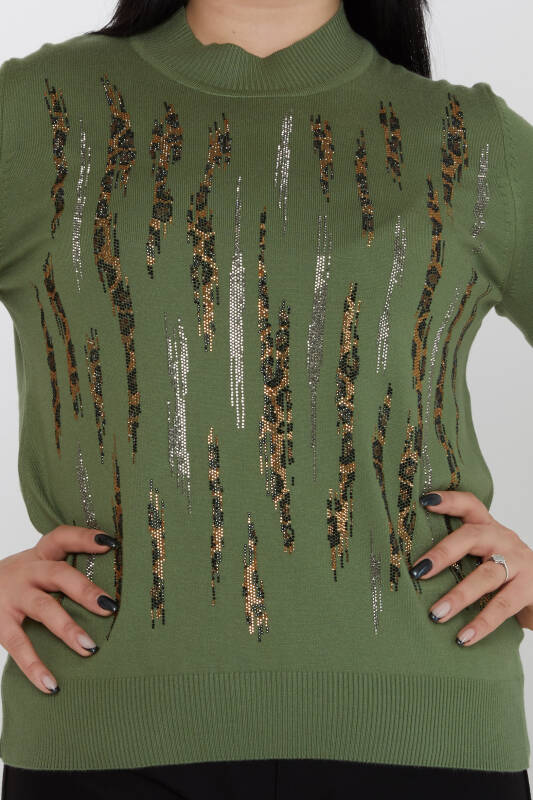 Maglione in maglia con collo alto ricamato leopardato, in pietra, color cachi - 31565 | KAZEE (Set di 3 M-L-XL)