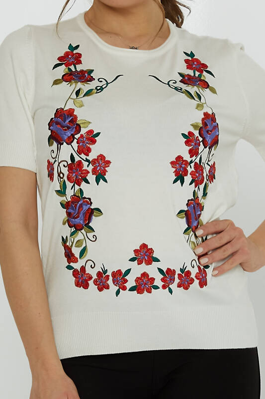 Maglione in Maglia Floreale Ricamato Pietra Ricamato Ecru - 31728 | KAZEE (Set di 3 L-XL-2XL)