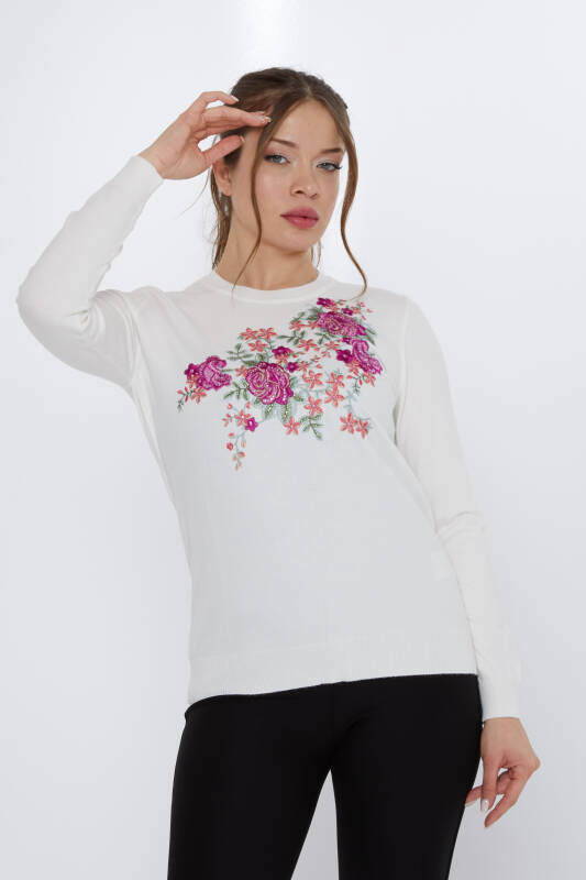 Maglione Maglione Rosa Ricamato Pietra Ricamato Ecrù - 31377 | KAZEE (Set di 3 L-XL-2XL)
