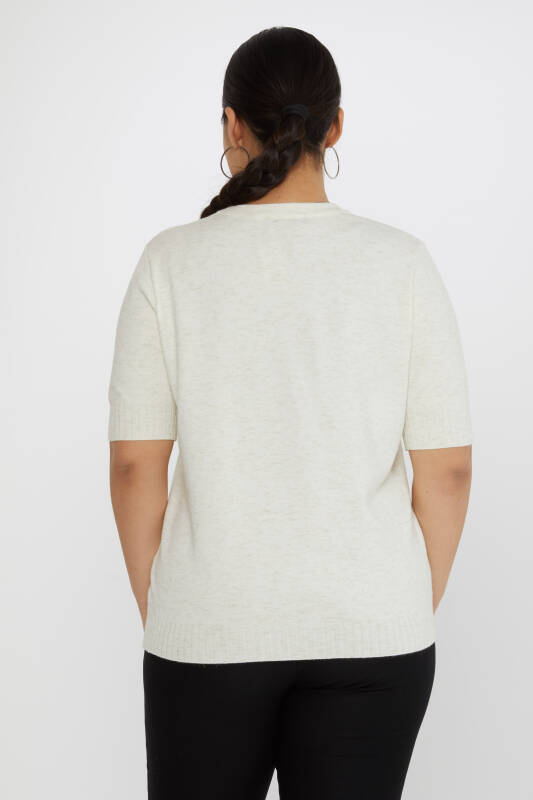 Pull En Maille Avec Logo Coeur Manches Courtes Ecru - 31634 | KAZEE (Lot de 3 XL-2XL-3XL)