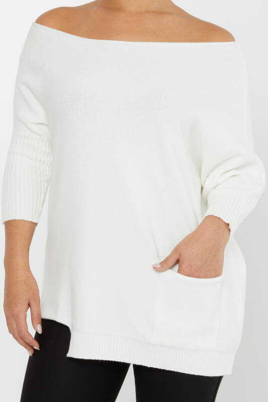 Pull en tricot, épaules basses, poches écru - 30237 | KAZEE (Lot de 3 M-L-XL)