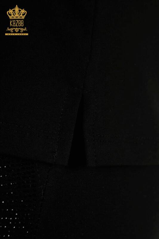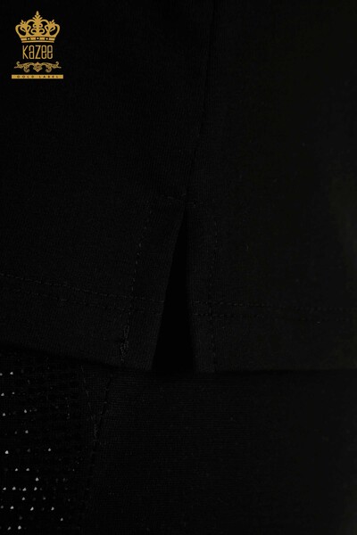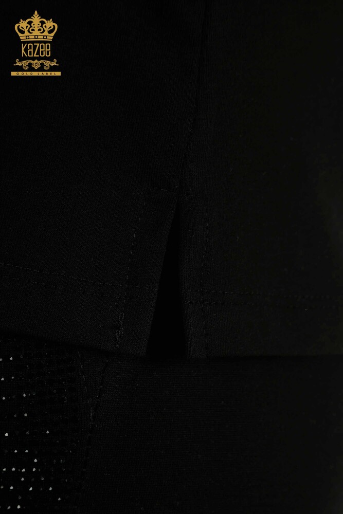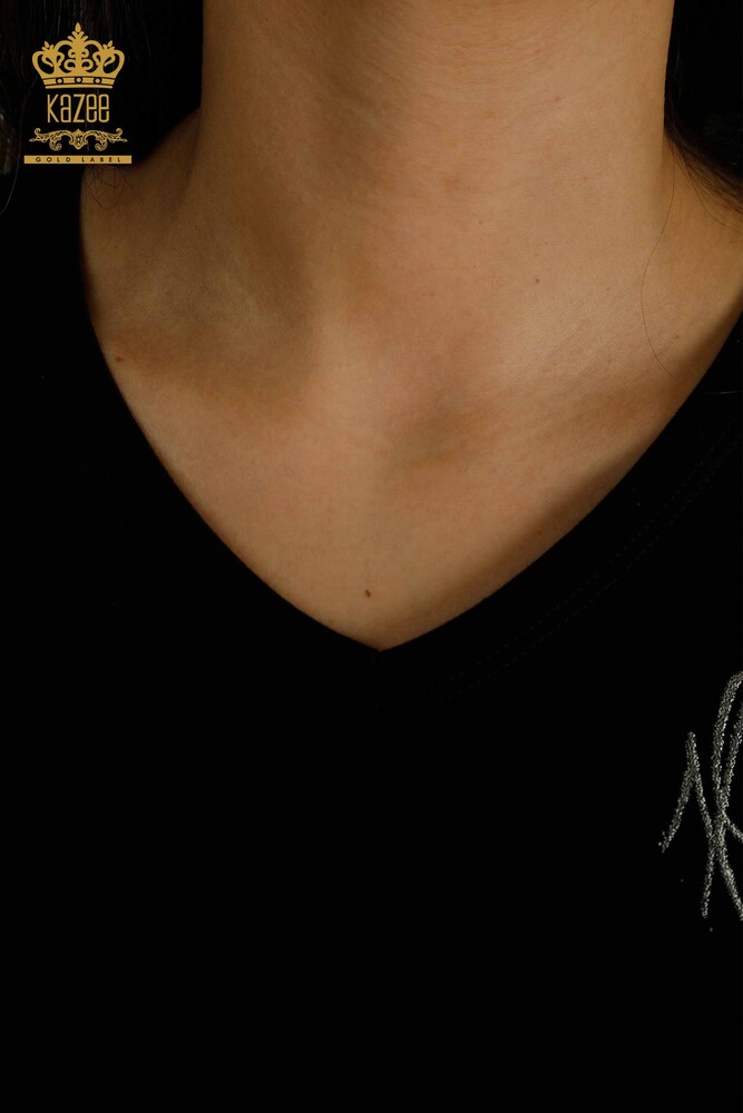 Venta al por mayor Blusa de mujer Rosa bordada Manga corta Piedra bordada Negro - 79867 | KAZEE