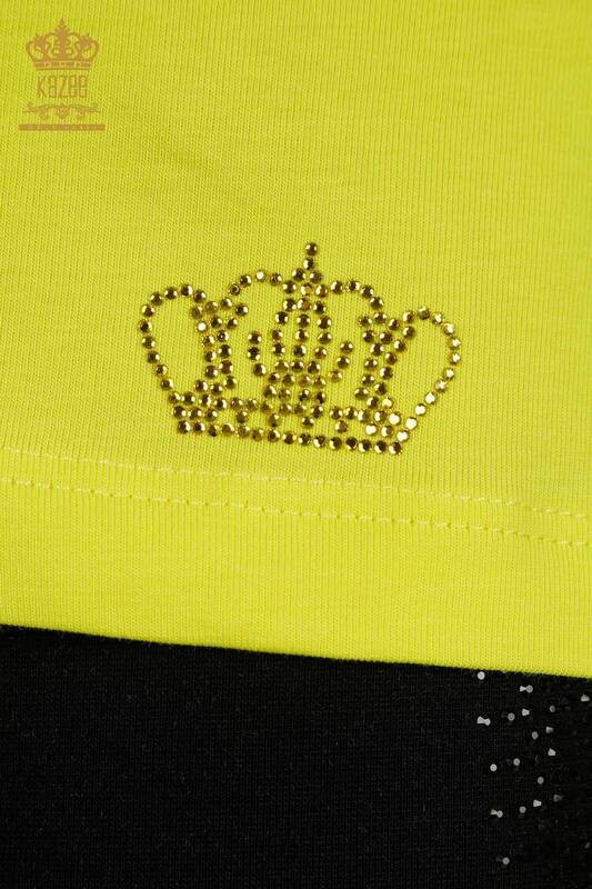 Venta al por mayor Blusa de mujer Manga Corta Piedra Bordada Cuello en V Amarillo - 79561 | KAZEE