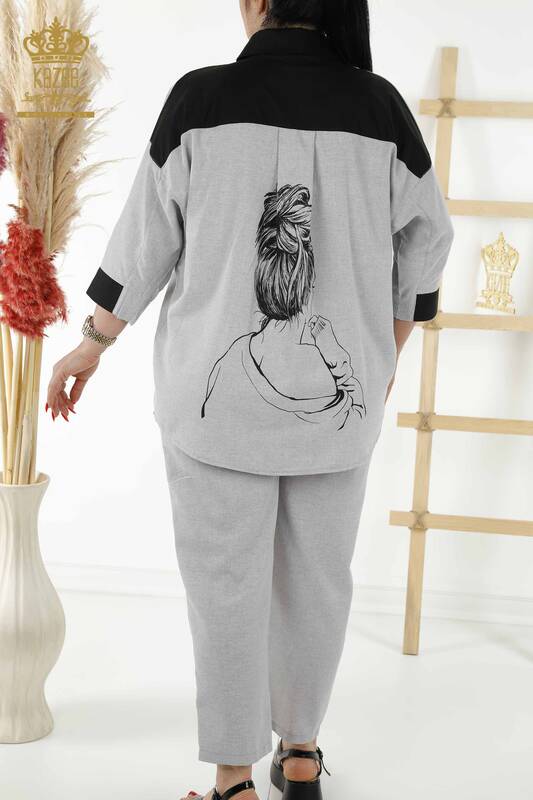 Venta al por mayor Camisa de Mujer Traje Bolsillo Estampado Gris - 20332 | kazee