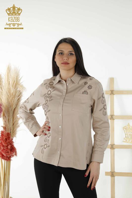 Venta al por mayor Camisa de Mujer con Estampado de Flores Beige Bordado Beige - 20246 | kazee