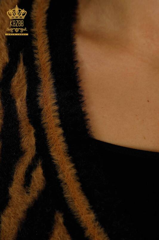 Venta al por mayor Cardigan Largo De Mujer A Cuadros Angora Dos Colores Marrón Negro - 30587 | KAZEE
