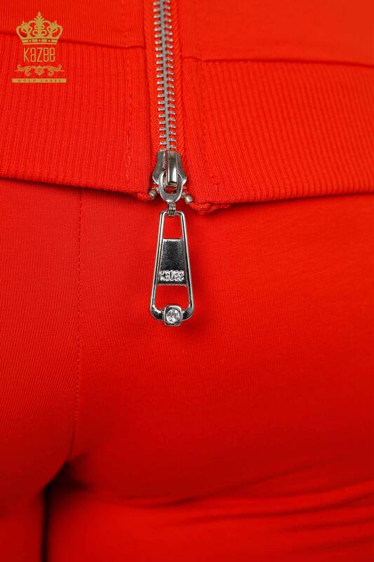 Venta al por mayor Conjunto de chándal para mujer Patrón de ala de ángel Piedra bordada Naranja - 17481 | kazee