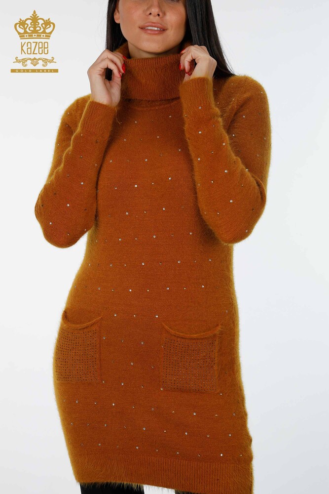 Venta al por mayor Mujer Angora Túnica Piedra Bordado Dos Bolsillos Detallado - 18876 | kazee
