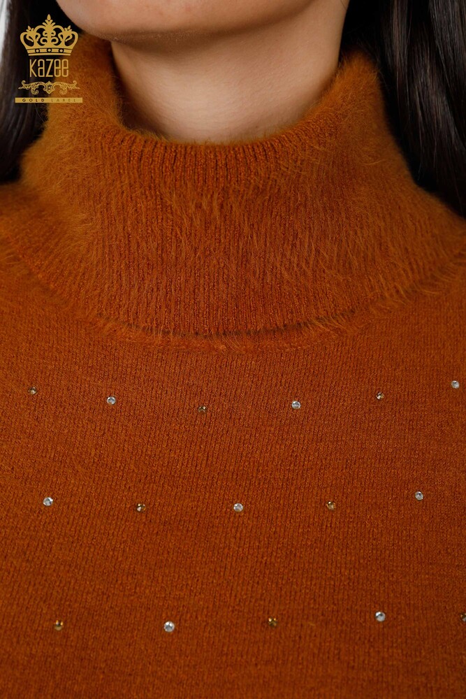 Túnica de angora detallada con dos bolsillos y bordado de piedra para mujer al por mayor