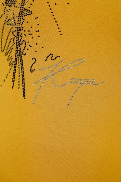 Venta al por mayor Blusa de mujer con cuello redondo y manga a rayas con diseño de rosas de piedra - 79023 | kazee