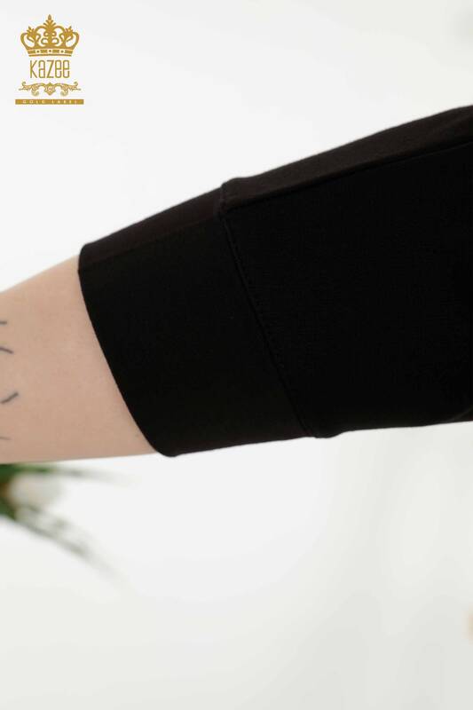 Venta al por mayor Blusa de Mujer Bolsillo Piedra Bordado Cuello Redondo Negro - 79222 | kazee
