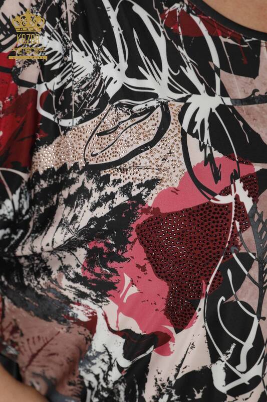 Venta al por mayor Blusa de Mujer con Estampado Digital Piedra Bordada Manga Corta Negra - 12060 | kazee