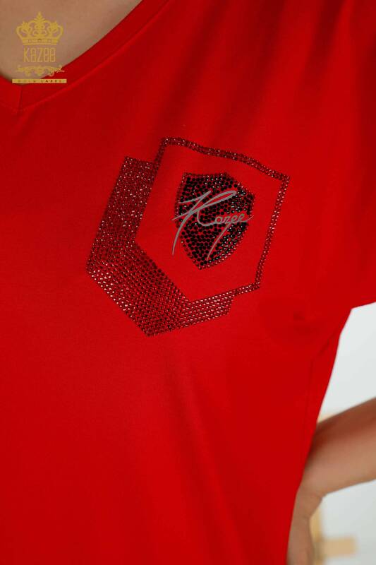 Venta al por mayor Blusa de Mujer Bolsillo Bordado Piedra Detallada Roja - 77487 | kazee