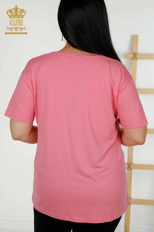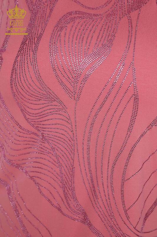 Venta al por mayor Blusa de Mujer Estampada Piedra Bordada Manga Corta Rosa - 79329 | kazee