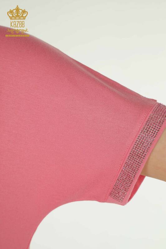 Venta al por mayor Blusa de Mujer Botón Detallado Piedra Bordada Manga Corta Rosa - 79297 | KAZEE