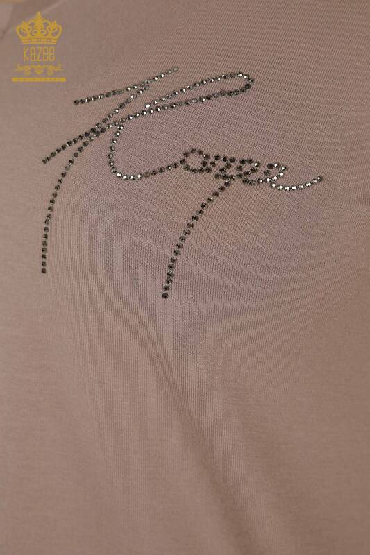 Venta al por mayor Botón de blusa de mujer con detalle de piedra bordada de manga corta de visón - 79297 | kazee