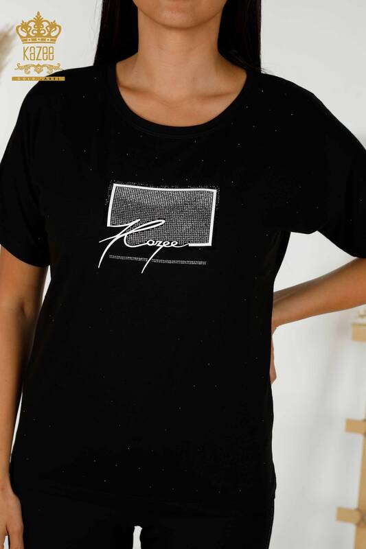 Venta al por mayor Blusa de Mujer Manga Corta Crystal Stone Bordado Negro - 79389 | kazee