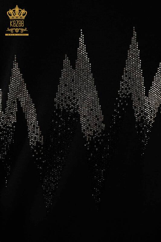 Venta al por mayor Blusa de Mujer Estampada Manga Corta Piedra Bordada Negra - 79109 | kazee