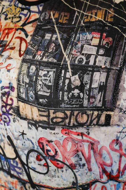 Venta al por mayor Blusa de Mujer con Estampado Digital Piedra Bordada Manga Corta - 12078 | kazee