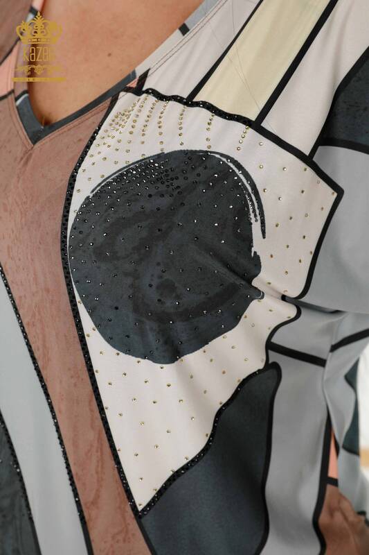 Venta al por mayor Blusa Mujer Estampado Digital Piedra Bordada Marron - 77896 | kazee