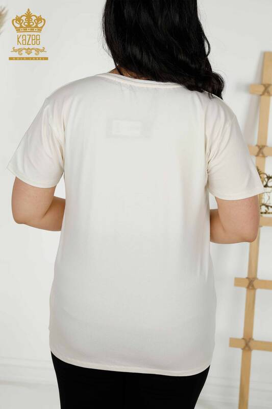 Venta al por mayor Blusa Mujer Estampado Floral Piedra Bordado Manga Corta Crudo - 79369 | kazee
