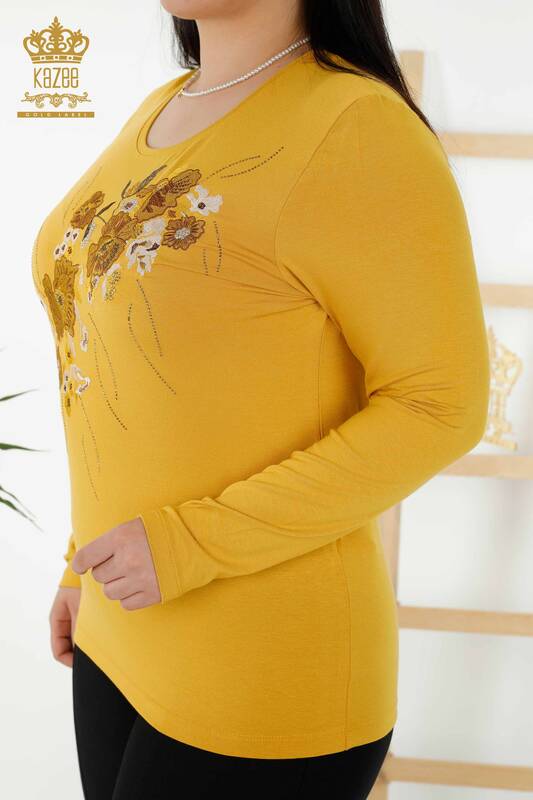 Venta al por mayor Blusa de Mujer Estampado Floral Piedra Azafrán Bordado - 79045 | kazee