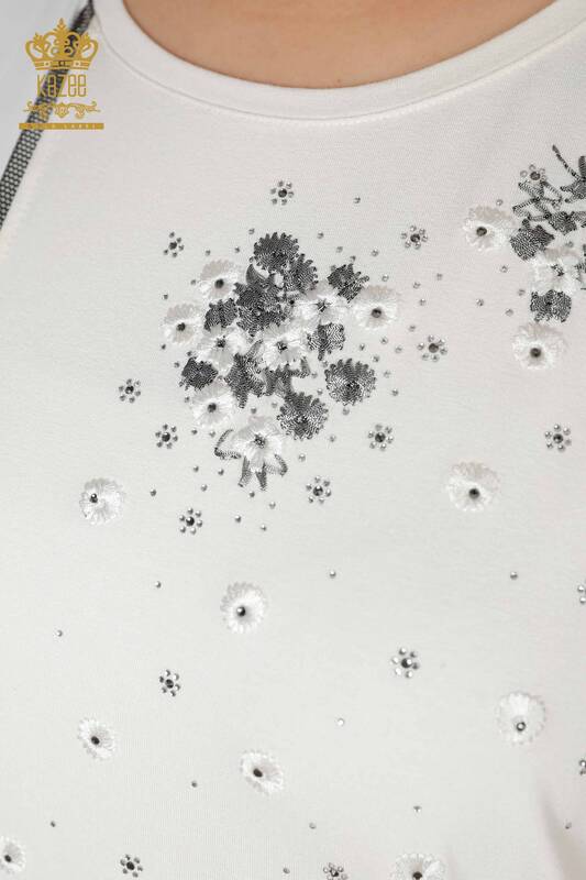 Venta al por mayor Blusa Mujer Estampado Floral Tul Detalle Bordado Piedra Crudo - 79032 | kazee