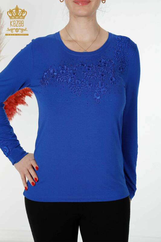 Venta al por mayor Blusa de Mujer con Piedras de Cristal Bordadas con Patrón de Flor Saks - 79010 | kazee