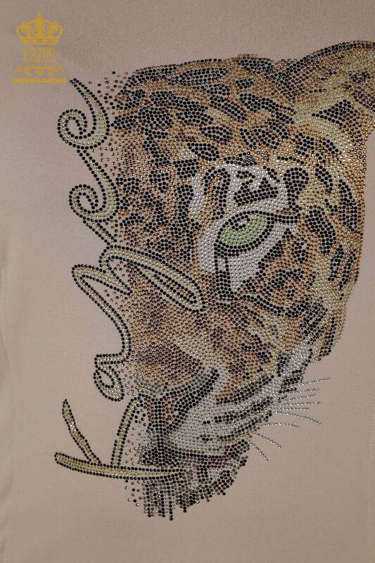 Venta al por mayor Blusa de mujer con estampado de leopardo y piedra bordada de visón - 79040 | kazee