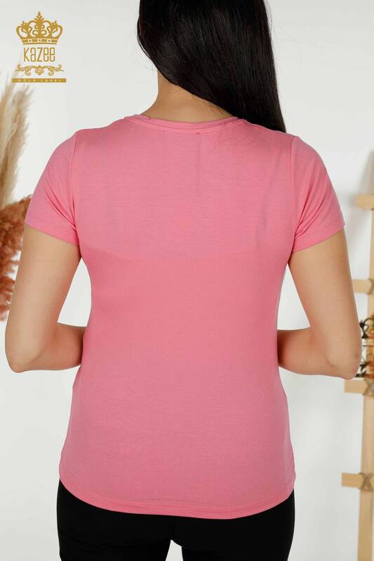 Venta al por mayor Blusa de Mujer Manga Corta Logo Básico Rosa - 79287 | kazee