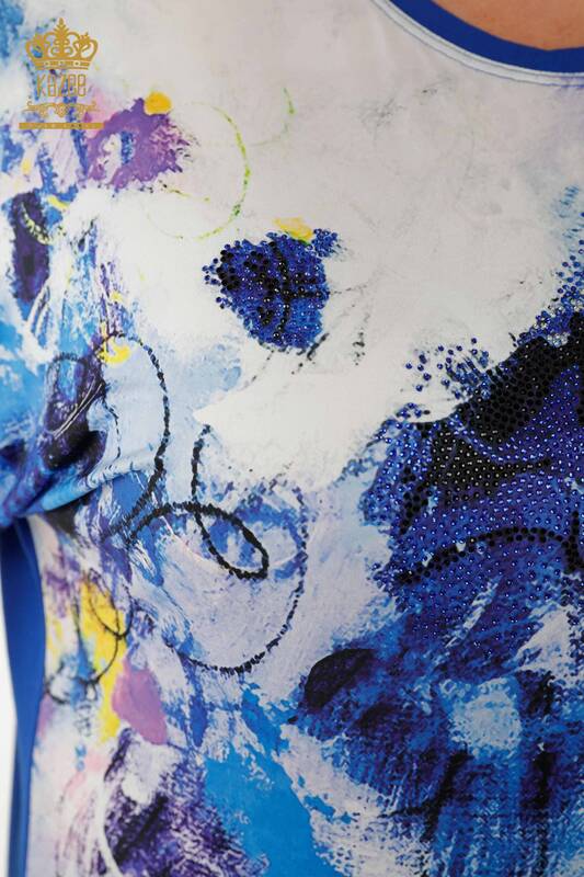 Venta al por mayor Blusa de Mujer con Estampado Digital Piedra Bordada Manga Corta - 12088 | kazee