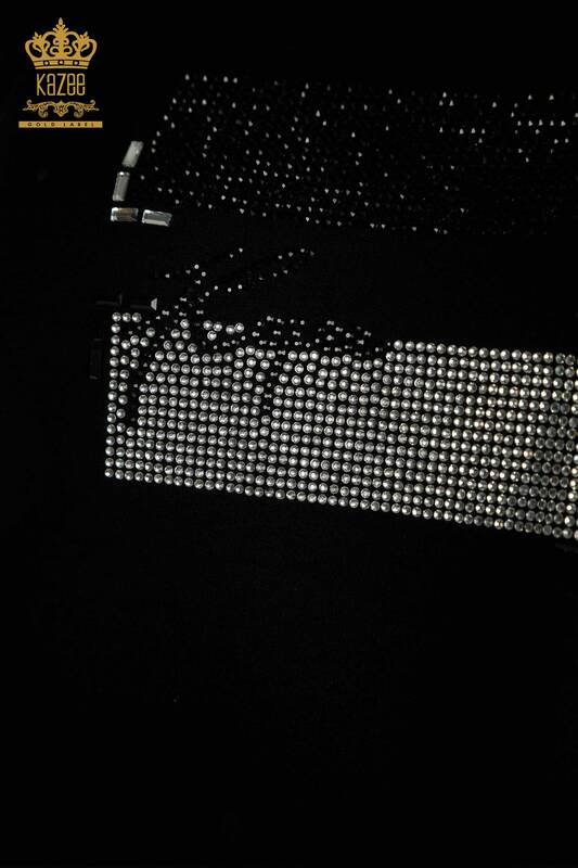 Venta al por mayor Blusa Mujer Manga Corta Piedra Bordada Negra - 79349 | kazee