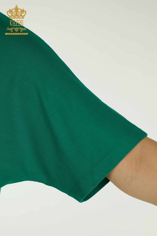 Venta al por mayor Blusa Mujer Manga Corta Tul Bordado Piedra Detallada Verde - 79302 | kazee