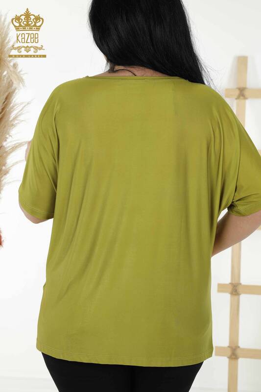 Venta al por mayor Blusa de Mujer Estampado Digital Piedra Bordado Manga Corta Peanut Green - 77756 | kazee