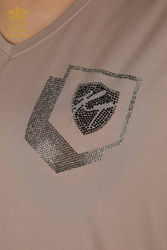 Venta al por mayor Blusa de mujer Bolsillo con bordado de piedra Visón detallado - 77487 | kazee