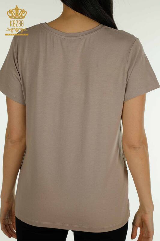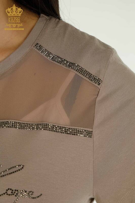 Venta al por mayor Blusa de Mujer Modelo Americano Tul Detalle de Piedra Bordado Visón - 78996 | kazee
