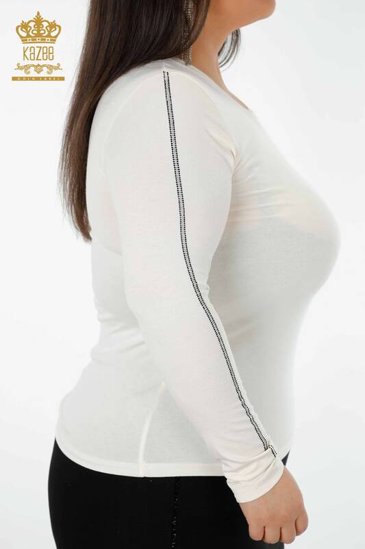 Venta al por mayor Blusa Mujer Bordado Piedra Cuello Redondo EKRU - 79000 | kazee