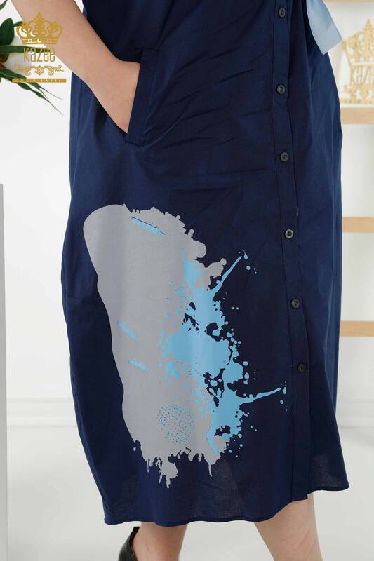 Venta al por mayor Vestido Camisero de Mujer de Dos Colores Estampado Azul Marino - 20378 | kazee