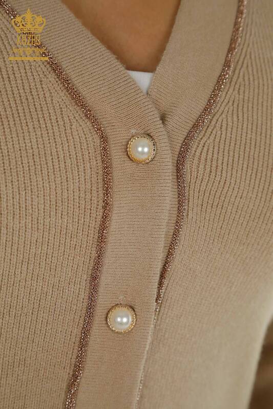 Venta al por mayor de mujer Cardigan Botón Detallado Brillo Transición Beige - 30366 | KAZEE