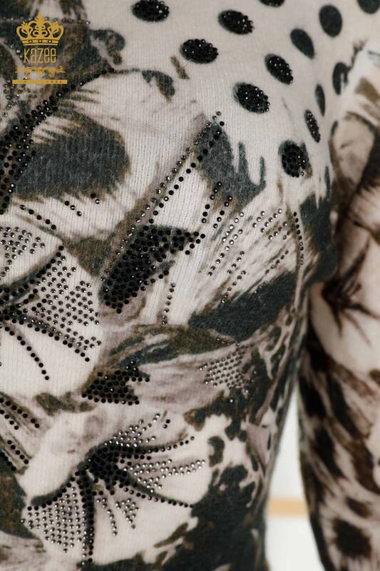 Venta al por mayor Suéter de punto para mujer con estampado de piedras angora beige - 16000 | kazee