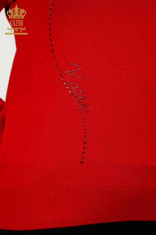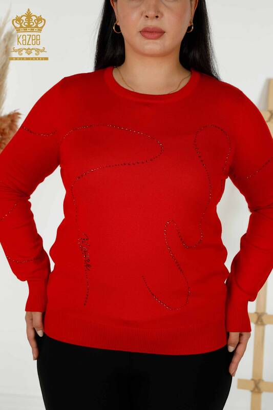 Venta al por mayor Suéter de Punto para Mujer con Cuello Redondo Piedra Bordado Rojo - 30157 | kazee
