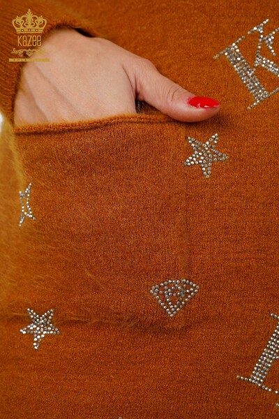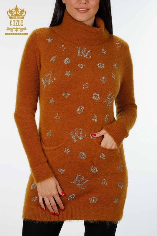 Vente en gros de tunique en tricot pour femmes à motifs deux poches détaillées Angora - 18895 | KAZEE
