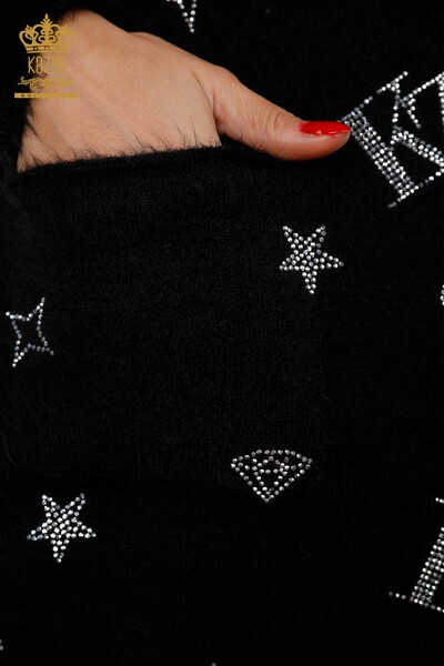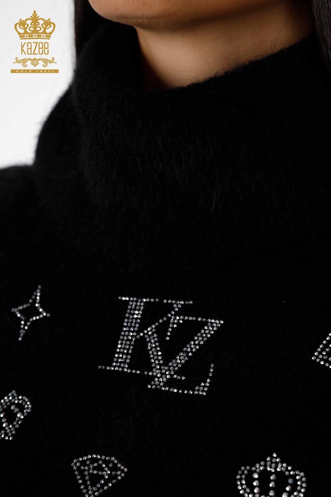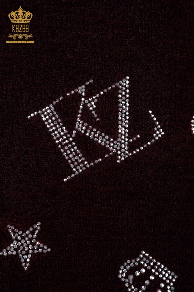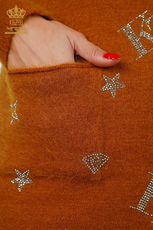 Venta al por mayor Túnica de punto con estampado de dos bolsillos para mujer Angora detallada - 18895 | kazee