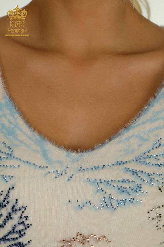 Venta al por mayor de Angora para Mujer Suéter de Punto Estampado de Hojas Manga Larga Piedra Bordada Digital - 40015 | KAZEE