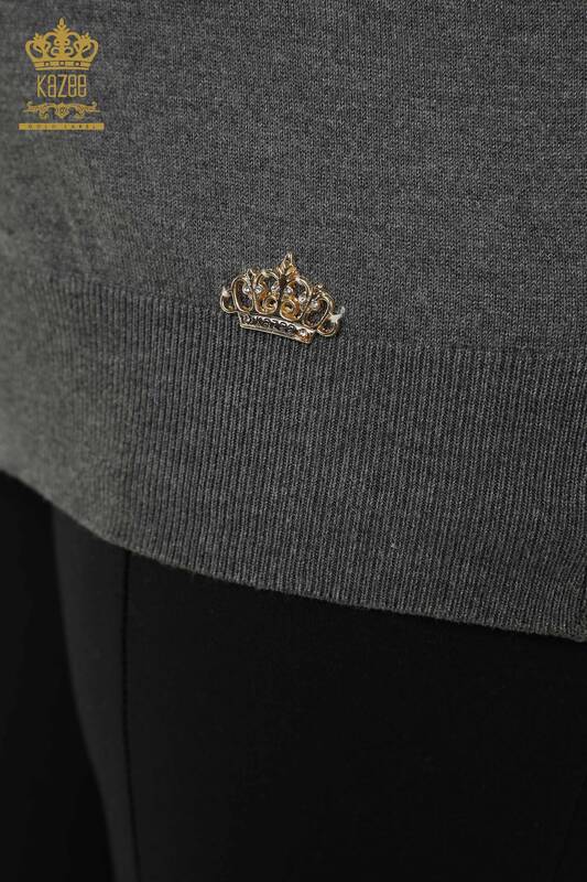 Venta al por mayor Suéter de Punto para Mujer Logo V Cuello Básico Antracita - 15685 | kazee